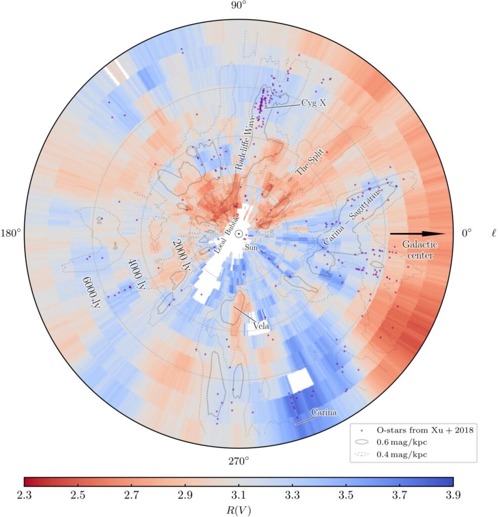 A Gaia küldetés harmadik adatközlése (DR3) 220 millió csillag spektrumát tartalmazza, amelyből a kutatók 130 milliót elemeztek. A legmodernebb mesterséges intelligencia segítségével rekonstruálták, hogy a galaxis különböző régióiban hogyan viselkedik a por, és így egy lenyűgözően részletes térképet alkottak az univerzum ezen rejtett dimenziójáról.