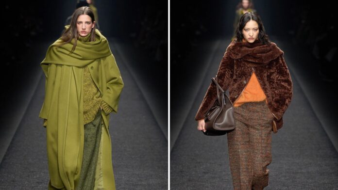 A Swaddle Season stílus középpontjában a nagy, puha textíliák, bő szabások és réteges megjelenések állnak. Gyakran használják a hatalmas, vastag sálakat, hosszú kabátokat, poncsókat, takarószerű darabokat és struktúrált köpenyeket, amelyek finom szövetekből, például gyapjúból vagy kasmírból készülnek. A kollekciókban láthattuk például a Alberta Ferretti, Bottega Veneta, és Chloe kollekcióiban, ahol a meleg, burkolózó darabok luxust és kényelmet sugároztak​ magukról.